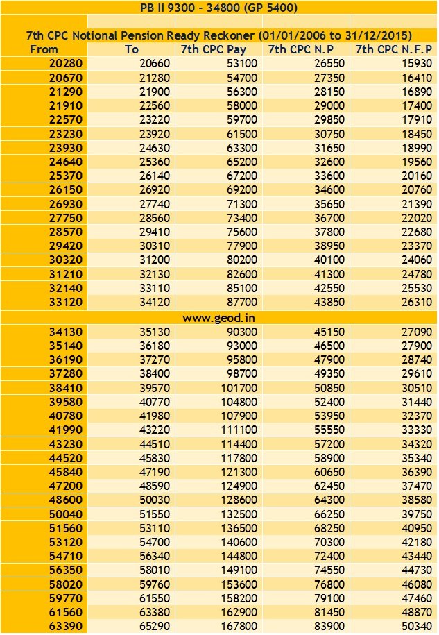 7th CPC Notional Pension Ready Reckoner – PB II GP 5400 (2006 T0 2015)